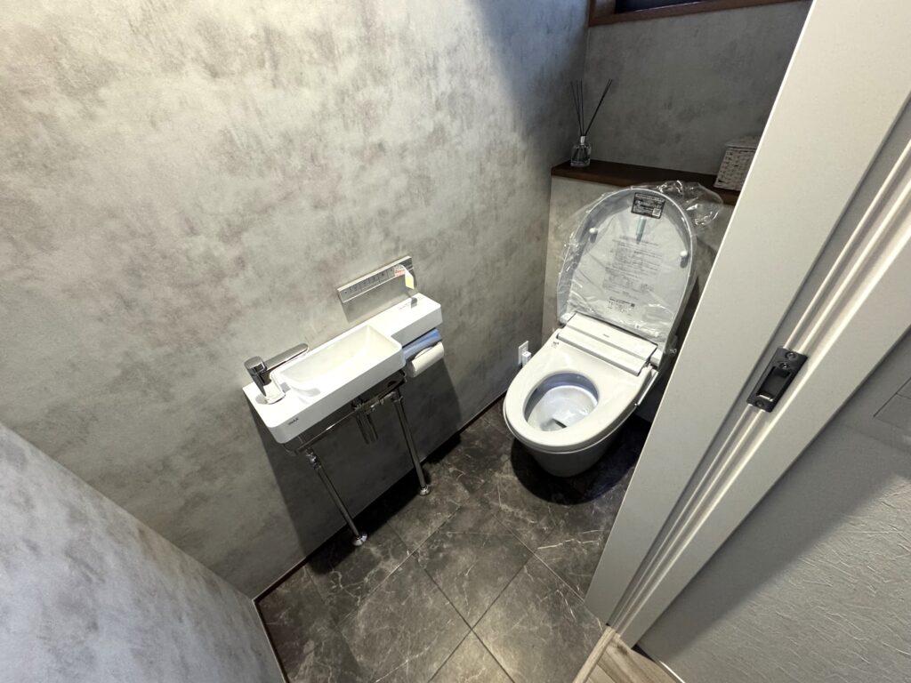 ・トイレは配置を見直して、ゆとりのある1帖空間に。手洗い器を別に設け、まるでお店のようなスタイリッシュな雰囲気に仕上がりました。 -