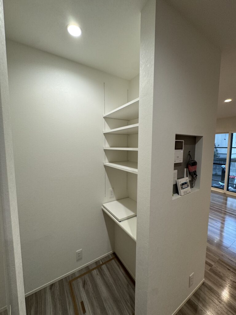 ・新しく設けたパントリーで収納力が大幅アップ。見せたくない家電や日用品もすっきり片付き、気持ちのいいキッチン空間になりました。