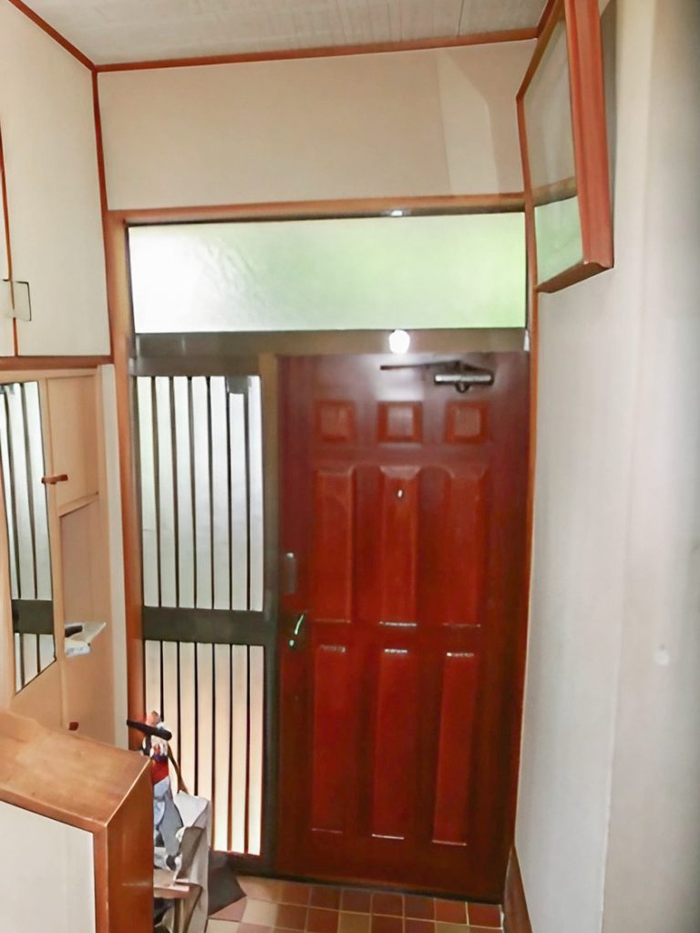 玄関ドアは古いタイプのもので、歪みが生じてしまい毎回開けるのが大変でした。