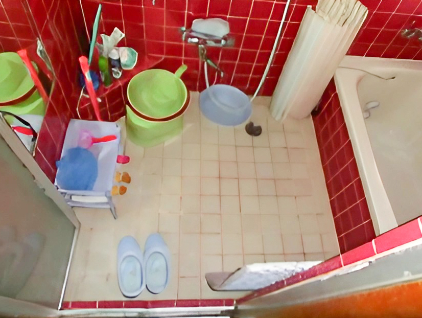 施工前の浴室です。狭い上にタイル張りのお風呂では掃除もしづらく、冬場は冷えました。周辺の木部をチェックし、揺れにも弱い構造であることが判明しました。 -