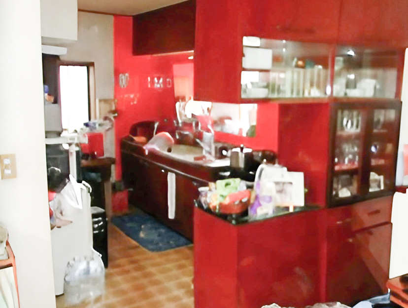 キッチンは食器棚や壁に遮られ、閉鎖的な空間でした。 -