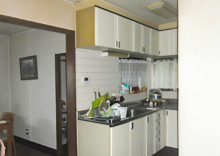 - 分離していた台所と食堂をワンルームですっきりとしたレイアウトに。